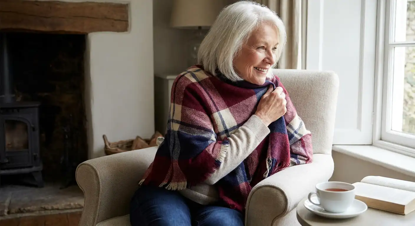 - Warm Shawls or Lap Blankets ($15–$30) Lightweight and easy to drape over shoulders.