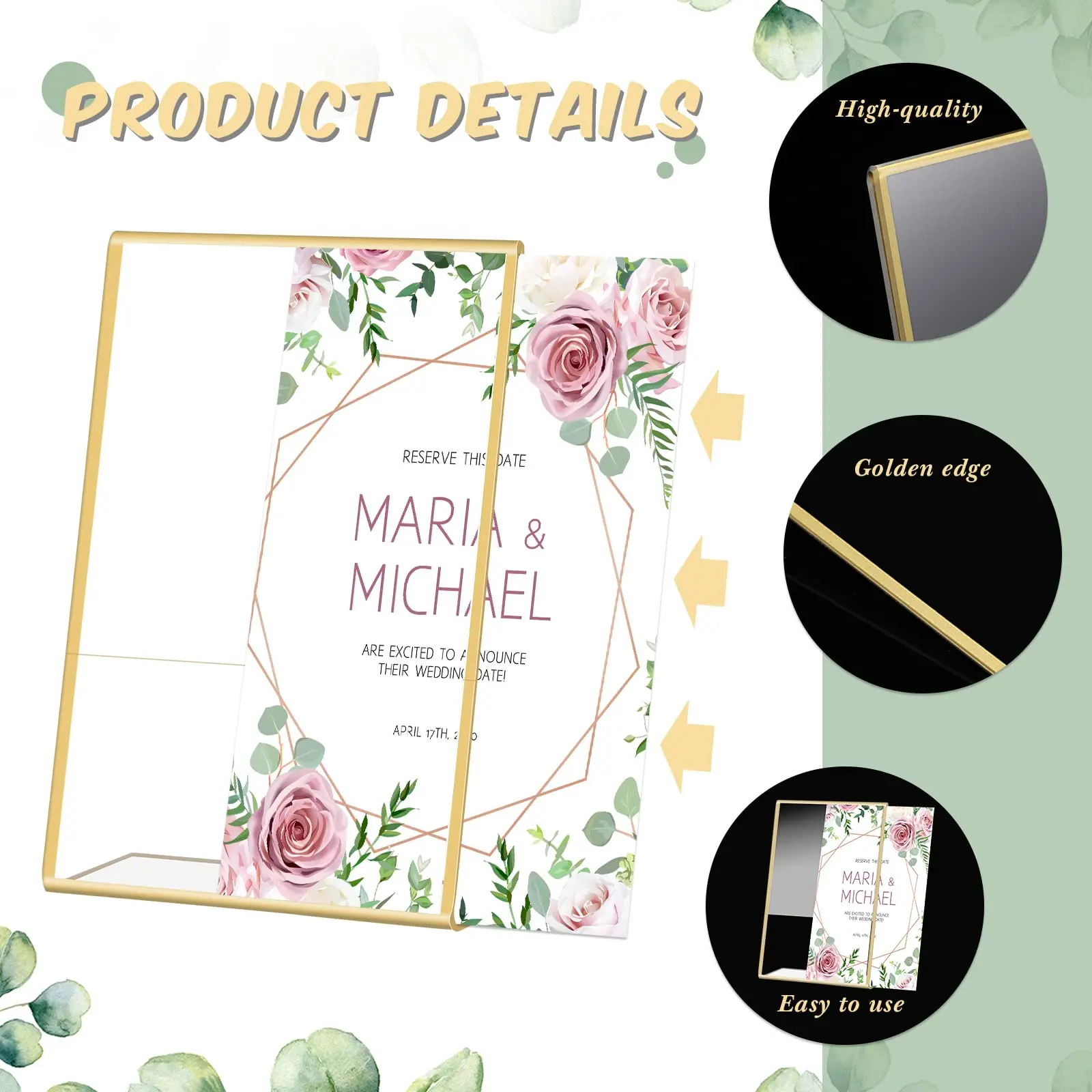 Give your tables a polished, professional look with this Gold Frame Acrylic Sign Holder—the perfect blend of modern clarity and timeless elegance. Whether you’re hosting a wedding, running a café, presenting at a trade show, or organizing office displays, this holder keeps your message crisp, visible, and beautifully framed.